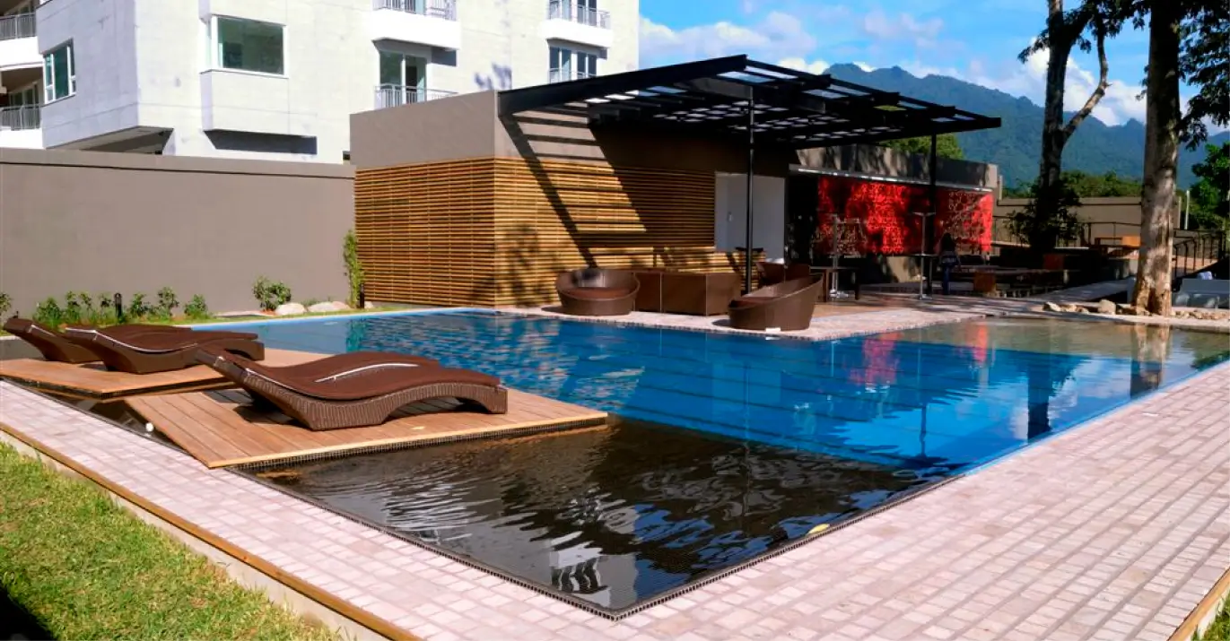 Además, cuenta con amenidades como lobby, gimnasio, jacuzzi, piscina con borde infinito en el Sky Lounge ubicado en la azotea, áreas verdes con senderos, piscina en jardines, salón de eventos, centro de negocios, salas de juegos para niños y adultos, estacionamiento de visitas y áreas de descanso para motoristas y guardaespaldas.