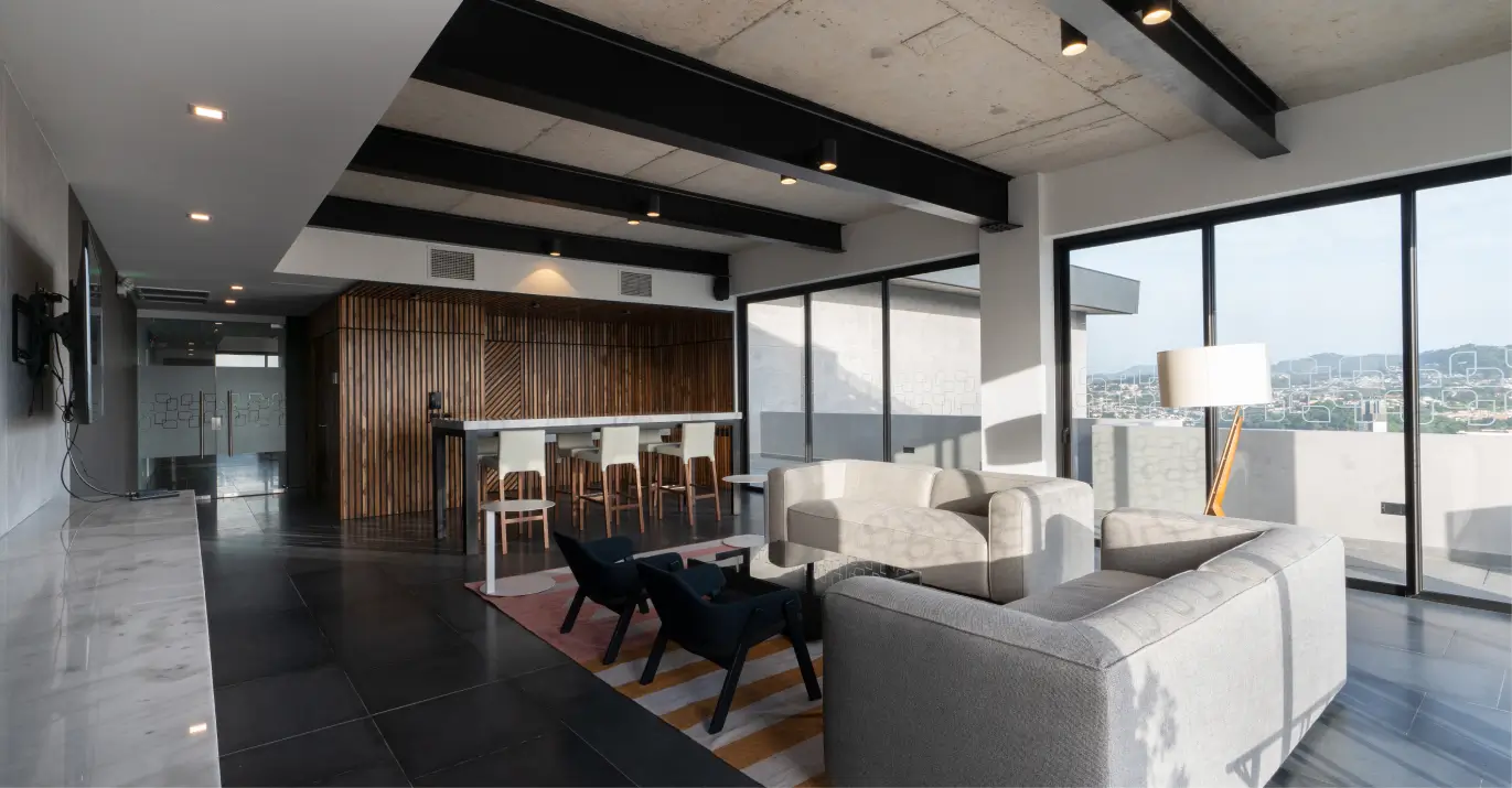 Un proyecto que celebra la sofisticación, la calma y el valor de los espacios con propósito; espacios que dan vida al Lobby Gallery, Business Box, Pool & Social Room, Garden City, Sky Deck, Level Up Training, entre otros. Cada espacio fue diseñado para equilibrar la vida social, el bienestar y la productividad, con ambientes que combinan arte, naturaleza y comodidad para sus residentes.